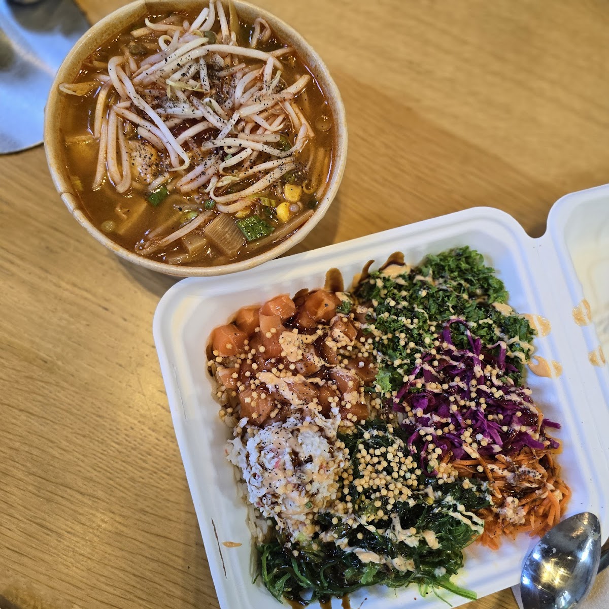 The atmosphere carries a sense of daily discovery, where every visit unfolds something a bit different. Bright daylight spills through wide windows, lending warmth to communal tables scattered thoughtfully around sleek serving stations offering bold flavors from around the world. Whether it’s the steam rising from a comforting bowl of ramen, the crisp freshness of a sashimi bowl, or the sweet indulgence of a banana foster crepe, each bite feels like a small moment of escape within the day’s routine.